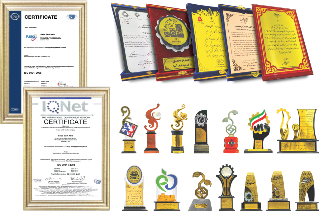 گروه صنعتی صبا ظرف آسیا در راستای تحقق چشمانداز خود مبنی بر ارتقای کیفیت و انطباق با استانداردهای جهانی، موفق به دریافت گواهینامهها و تأییدیههای معتبر داخلی و بینالمللی شده است. این گواهینامهها، نشاندهنده تعهد شرکت به بهبود مستمر، رعایت اصول کیفی در تمامی مراحل تولید و پایبندی به الزامات فنی و زیستمحیطی میباشند.