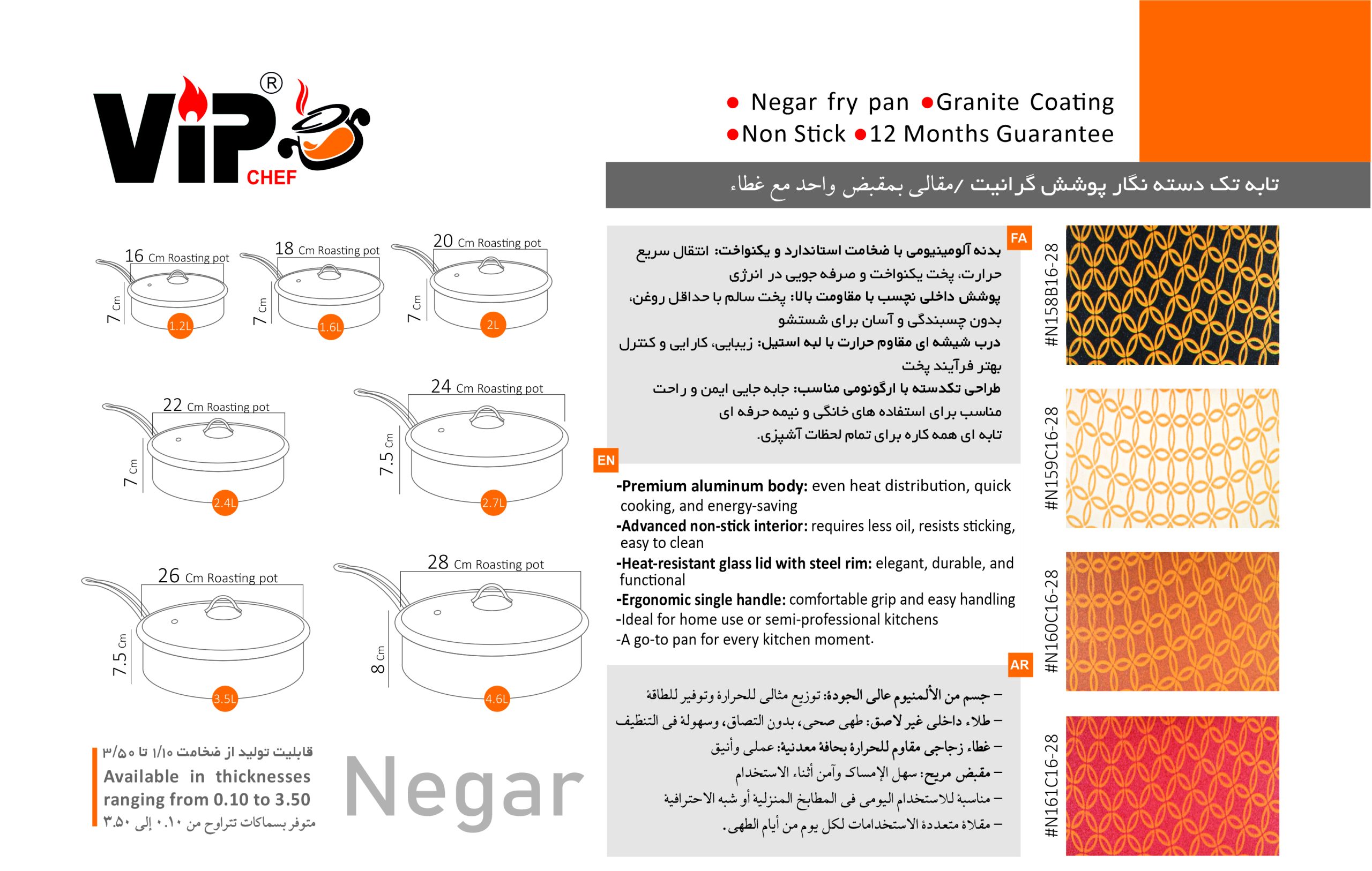 ترکیبی از کیفیت، دوام و طراحی کاربردی که امکان استفاده برای انواع غذاها و روشهای پخت را فراهم میکند.