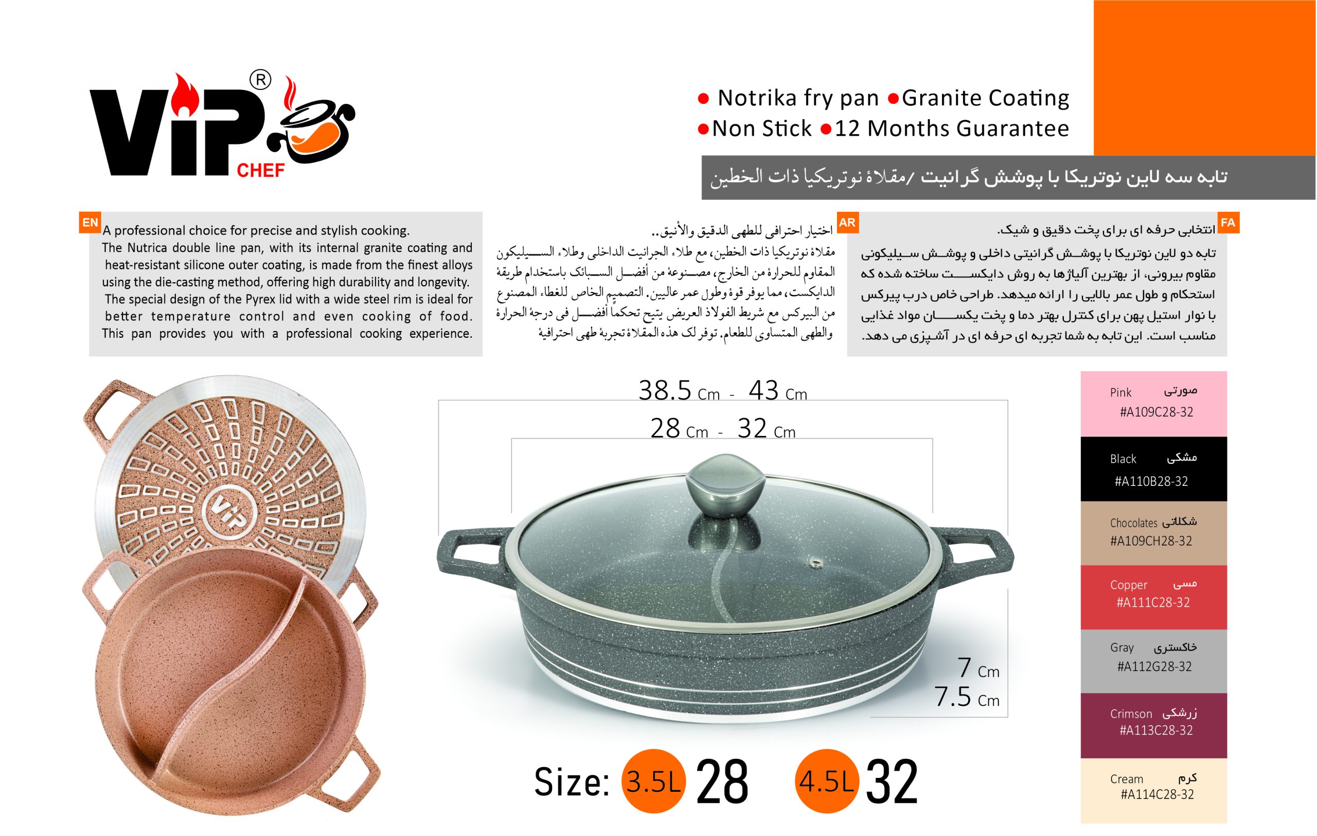 اولین کسی باشید که دیدگاهی می نویسد “تابه 3 لاین نوتریکا با پوشش گرانیت”