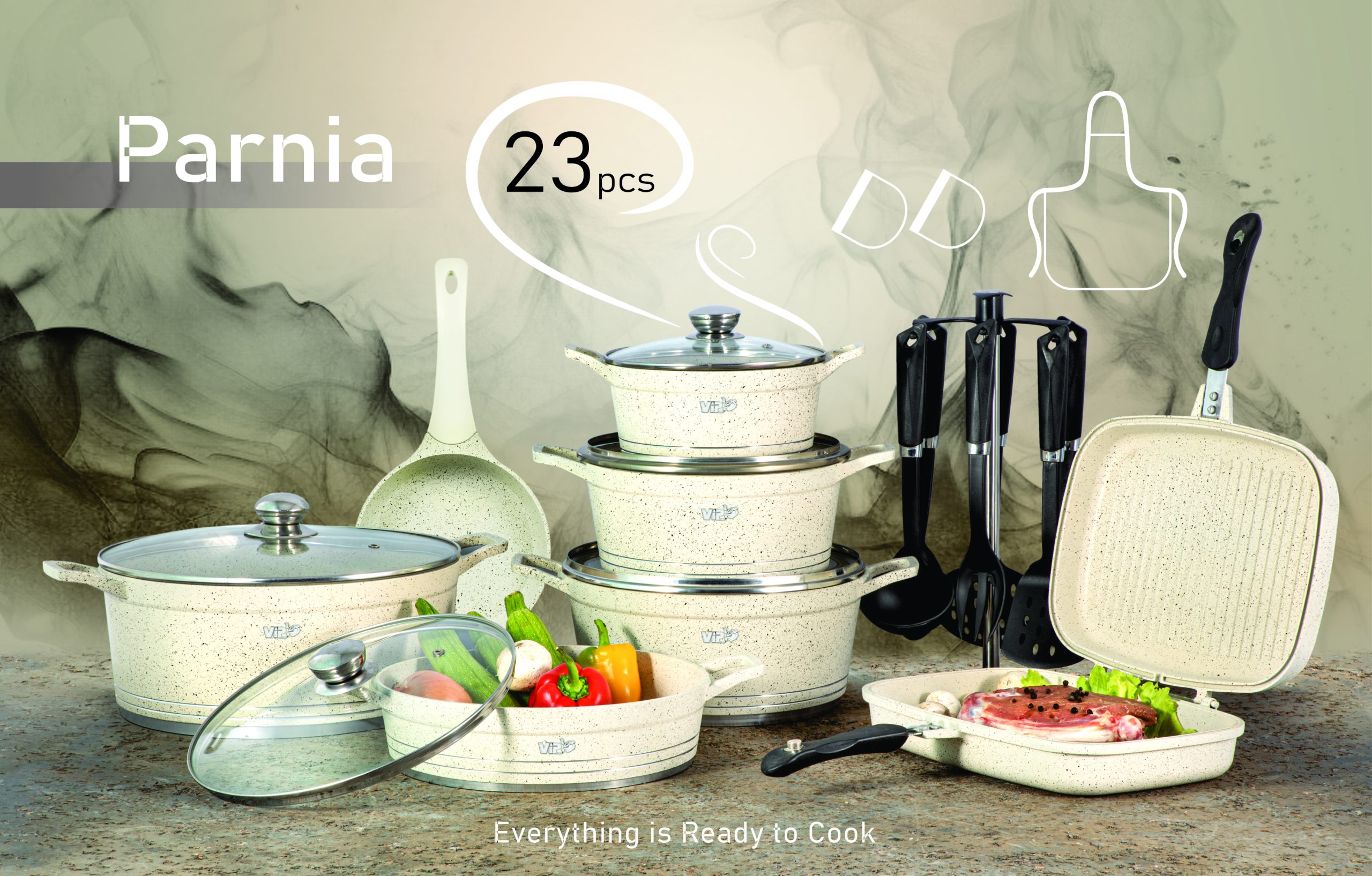 سرویس قابلمه ۲۳ پارچه پرنیا با کیفیت تضمینشده، دوام طولانی و طراحی کاربردی، تجربهای آشپزی سالم، آسان و حرفهای را برای شما فراهم میکند.